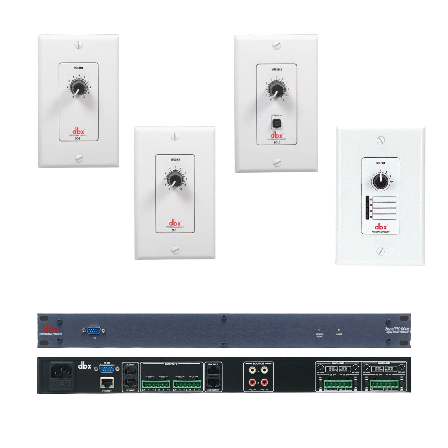 At the core of this system is the DBX ZonePro 641m digital processor, offering 6 inputs and 4 outputs for professional-level routing and audio management. The included remote controllers allow easy adjustment of mic levels, music volume, source selection, and mute functions — all without leaving the studio.