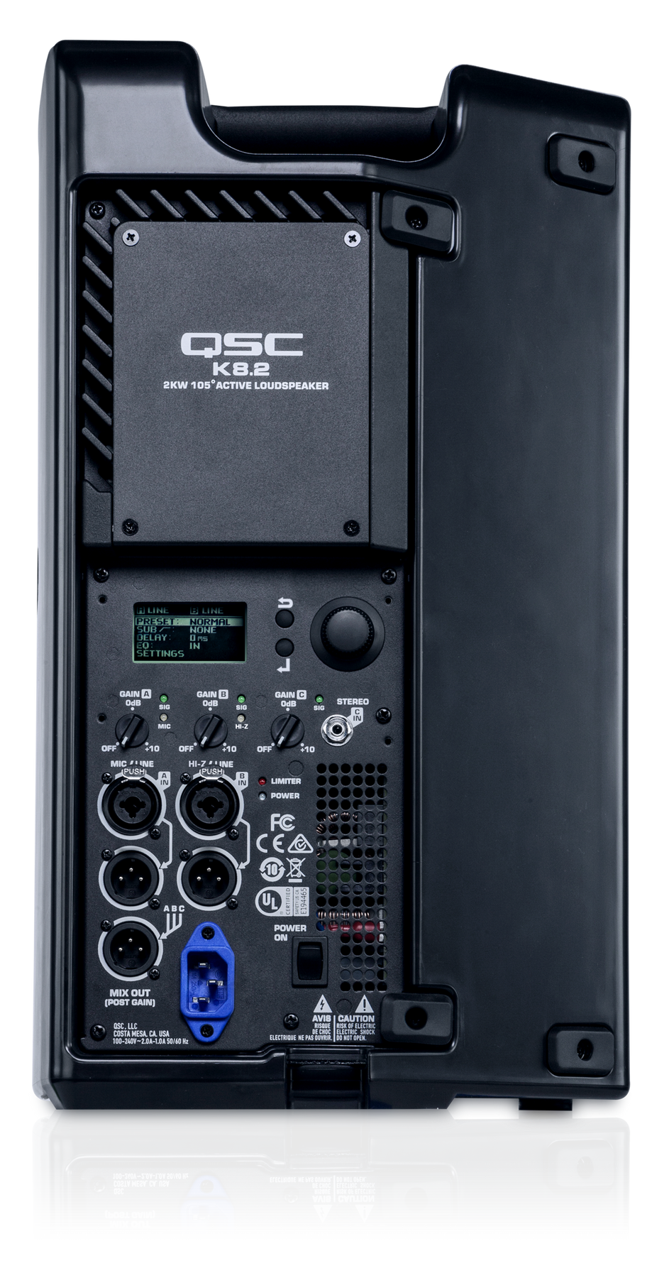 - Multi-function digital display for control and selection of loudspeaker functions including cross-over, EQ, delay and frequency contour