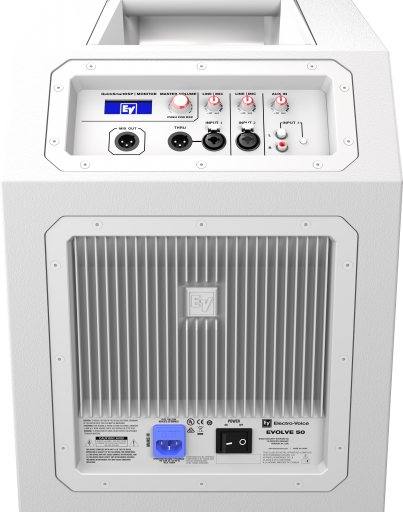 The EVOLVE 50 Portable Column System is a three component loudspeaker system powered by a 1000 W Class-D amplifier and driven by Electro-Voice's QuickSmartDSP.