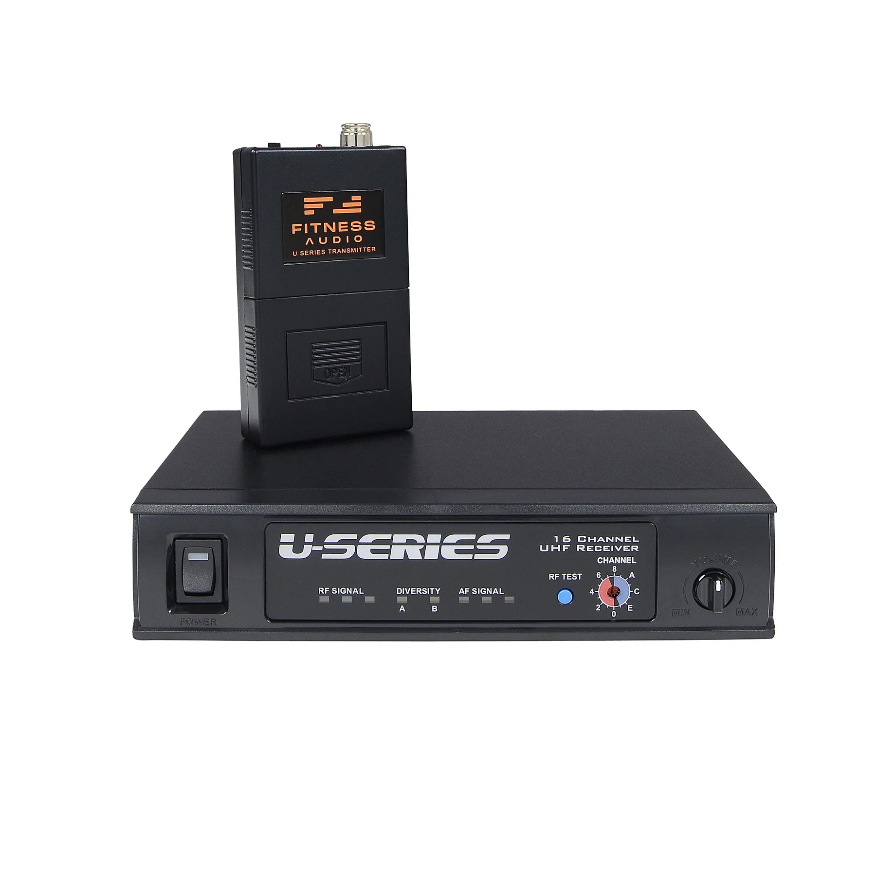 The Fitness Audio® 16 Channel UHF Wireless System features a Beltpack Transmitter made for fitness instructors. It is a simply made case - no hinges or flaps, no external antennas to get broken off and only one On/Off switch.